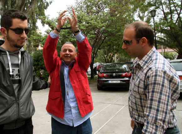 Έξω από το εισαγγελικό γραφείο όταν είδε τους δημοσιογράφους σήκωσε προκλητικά τα χέρια του με τις χειροπέδες που φορούσε φωνάζοντας: «Στους πολιτικούς που κλέβουν δεν φορούν χειροπέδες, φορούν σε αυτούς που δουλεύουν και δημιουργούν. Το Δημόσιο μου χρωστάει 15 δισεκατομμύρια δραχμές»!