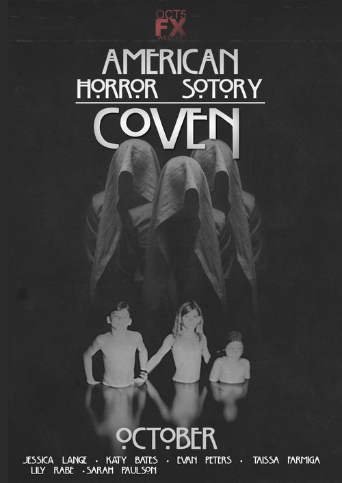 Την πολυβραβευμένη σειρά τρόμου που φέτος διανύει τον τρίτο και πιο επιτυχημένο κύκλο επεισοδίων της, με τον υπότιτλο «Coven» εστιάζοντας σε μια ομάδα μαγισσών της Νέας Ορλεάνης (κάθε σεζόν η σειρά αφηγείται μια διαφορετική, αυτοτελή ιστορία τρόμου) με πρωταγωνιστές όλους τους προαναφερθέντες (στην Ελλάδα προβάλλεται από το Fox). Σήμα κατατεθέν του American Horror Story», αποτελούν τόσο τα γοτθικά κομψοτεχνήματα, teaser του όσο και τα προωθητικά του poster. Τα τελευταία, πραγματικά εικαστικά έργα τέχνης, επιχειρούν να αποτυπώσουν φωτογραφικά και αφηρημένα, το πνεύμα της ιστορίας της κάθε σεζόν. Χρησιμοποιώντας πολλές φορές πειραγμένο vintage υλικό στοιχειωμένων κτιρίων ή περίεργων ασπρόμαυρων φωτογραφιών που κάνουν τη φαντασία του θεατή να οργιάσει όπως (βλ. παρακάτω).